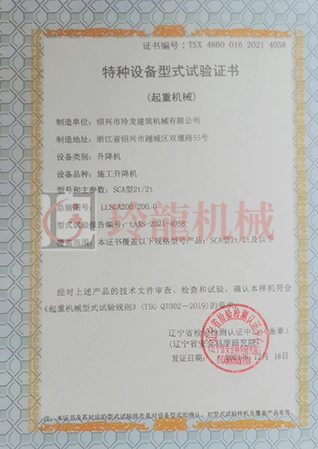 施工升降機(jī)-特種設(shè)備型式試驗(yàn)合格證