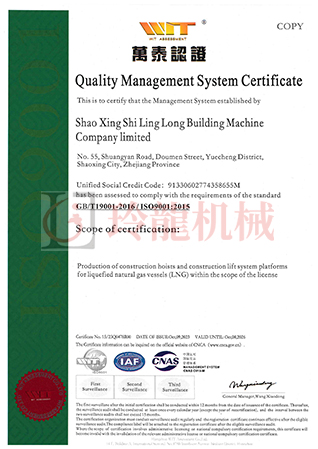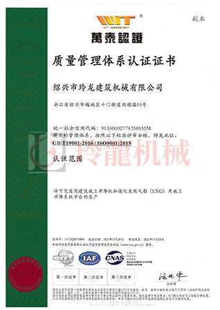 SCPT-400液化天燃?xì)獯↙NG)施工升降系統(tǒng)平臺(tái)新產(chǎn)品評(píng)價(jià)證書(shū)