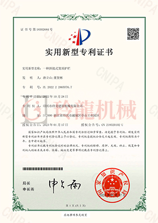 圍欄底部無(wú)螺栓連接結(jié)構(gòu)-實(shí)用新型專利證書(shū)